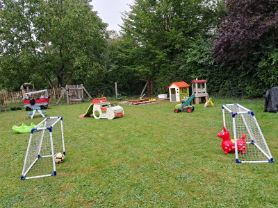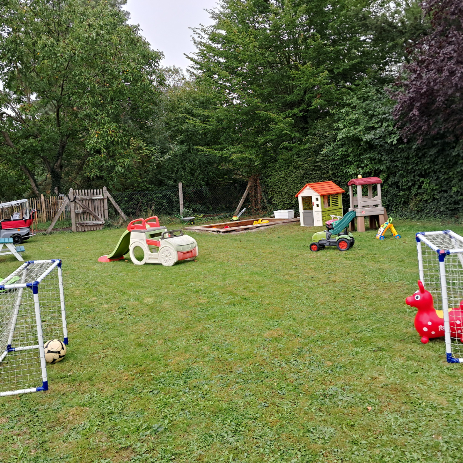 Ganz in der Nähe befindet sich ein Spielplatz mit viel Natur.